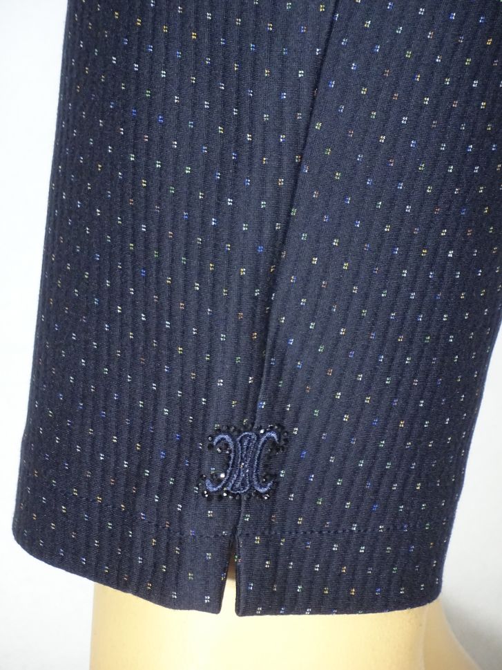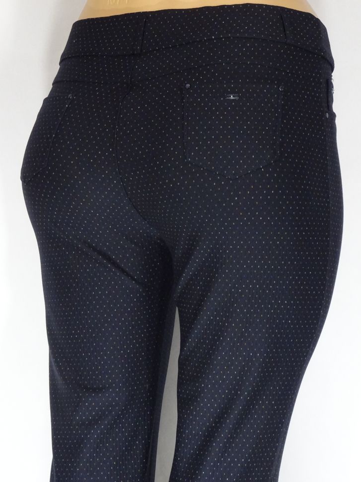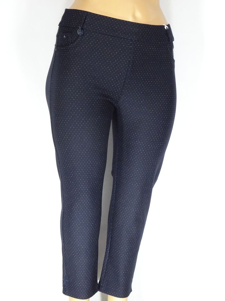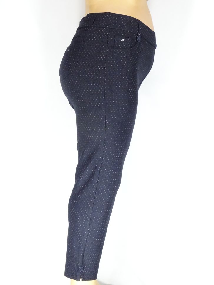 Дамски макси плътен еластичен панталон в големи размери на малки точки в синьо 03 00446