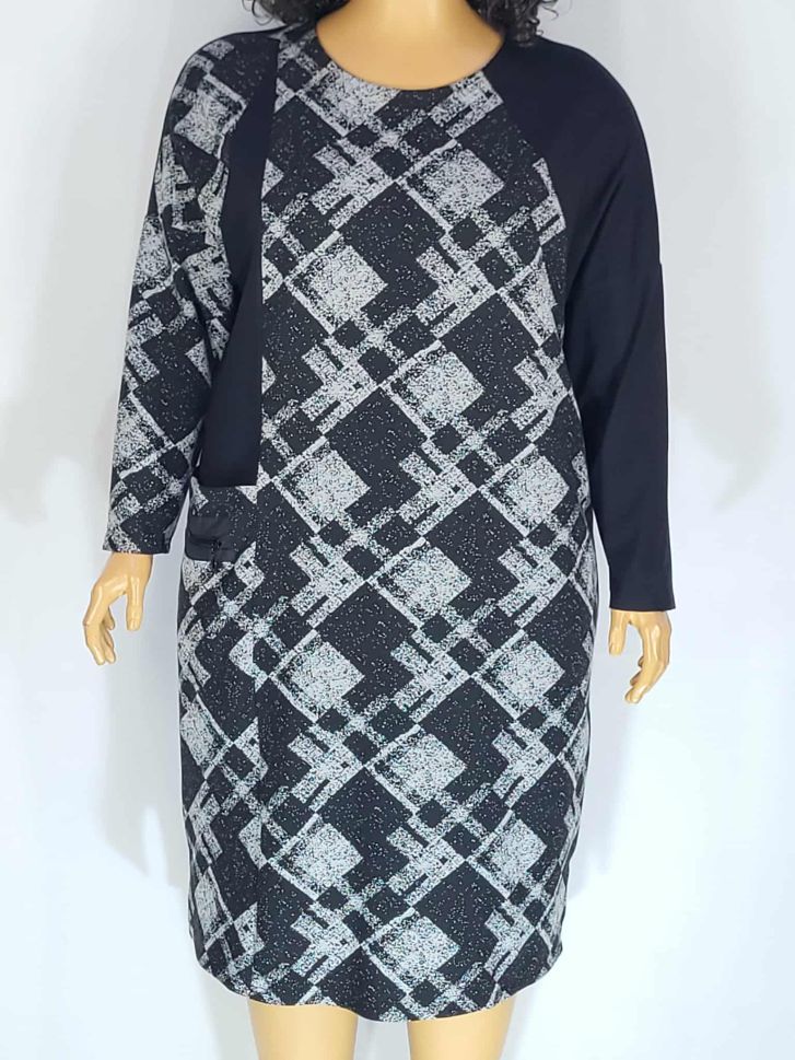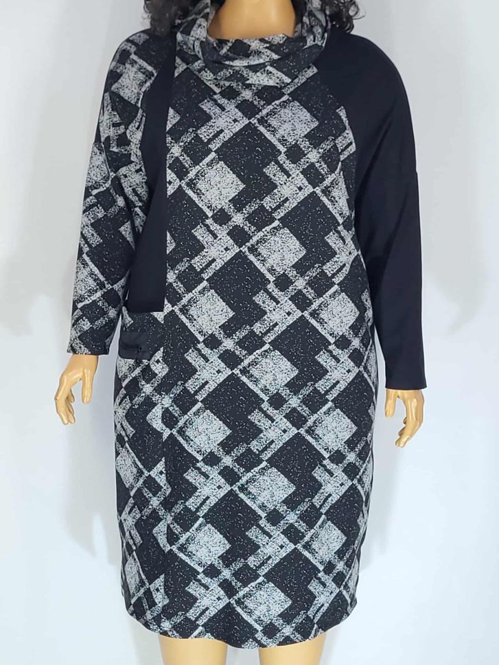 Дамска макси дълга рокля в големи размери от плътно трико с интересна раздвижена кройка и подвижна шал яка 05 00367