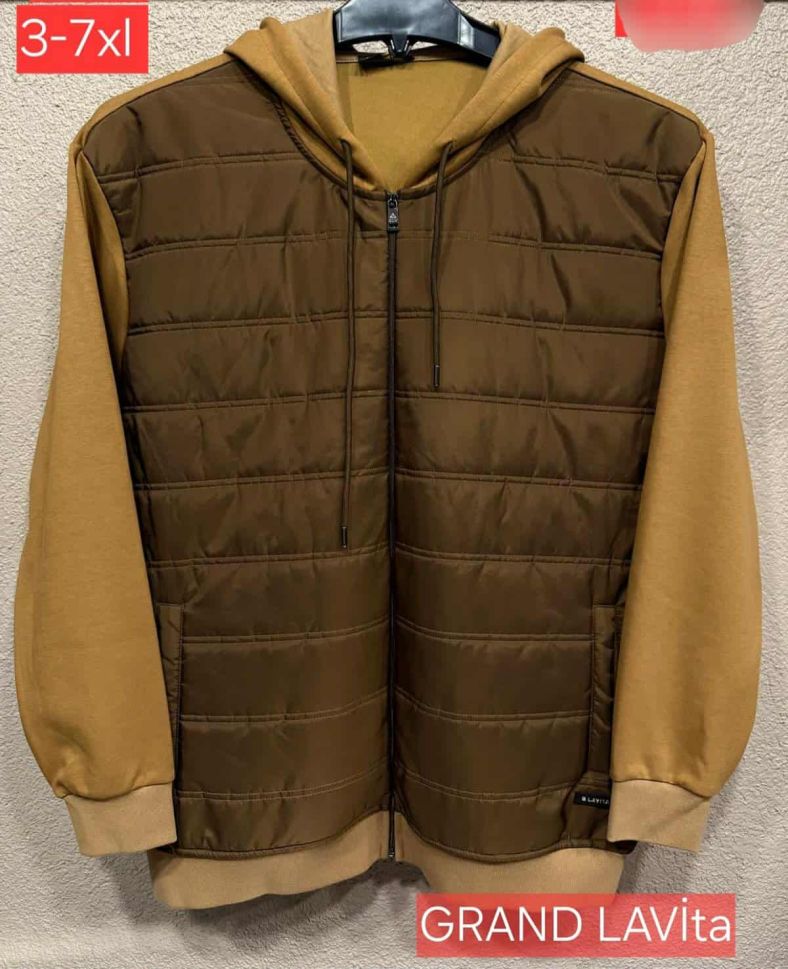 Мъжки суичер в големи размери с комбинация плат и шушляк в бежаво 26 00001