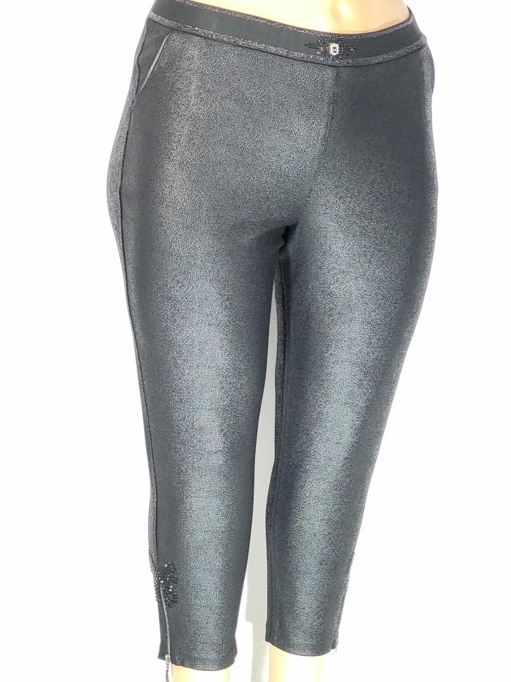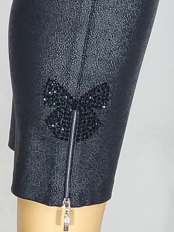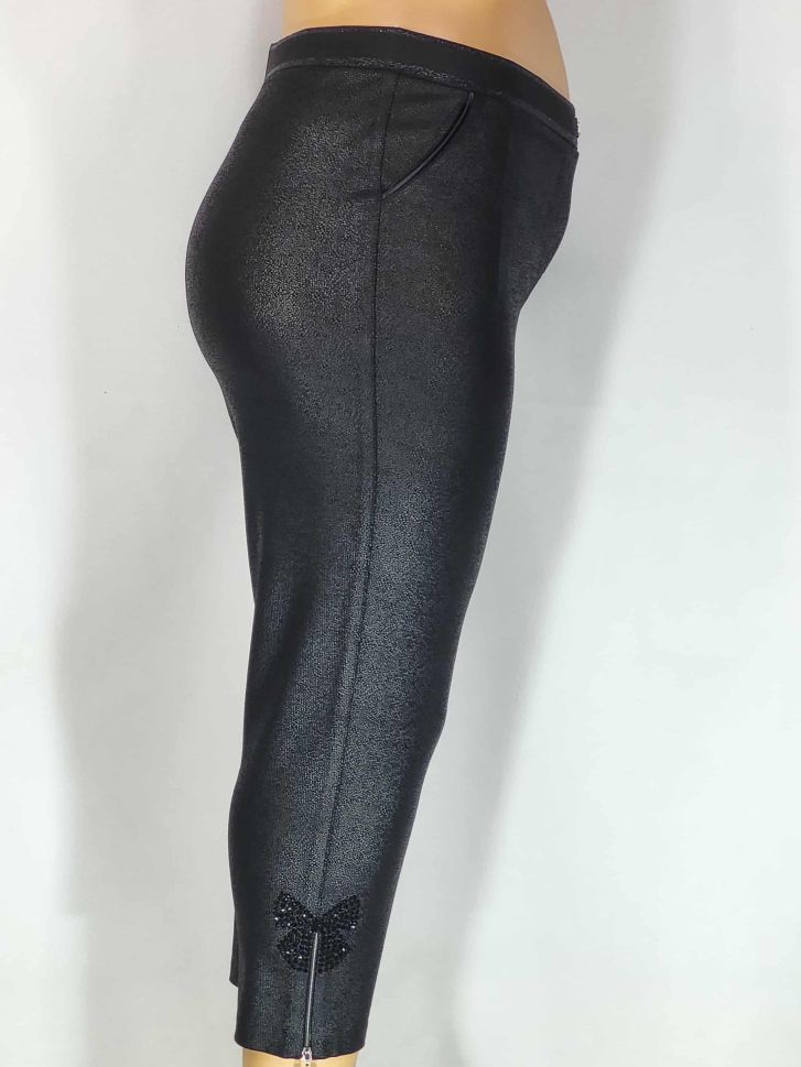 Дамски макси еластичен плътен спортно елегантен панталон в големи размери с интересна рипсена материя,цип и камъни отстрани на крачолите ,широк ластик в черно 03 00551