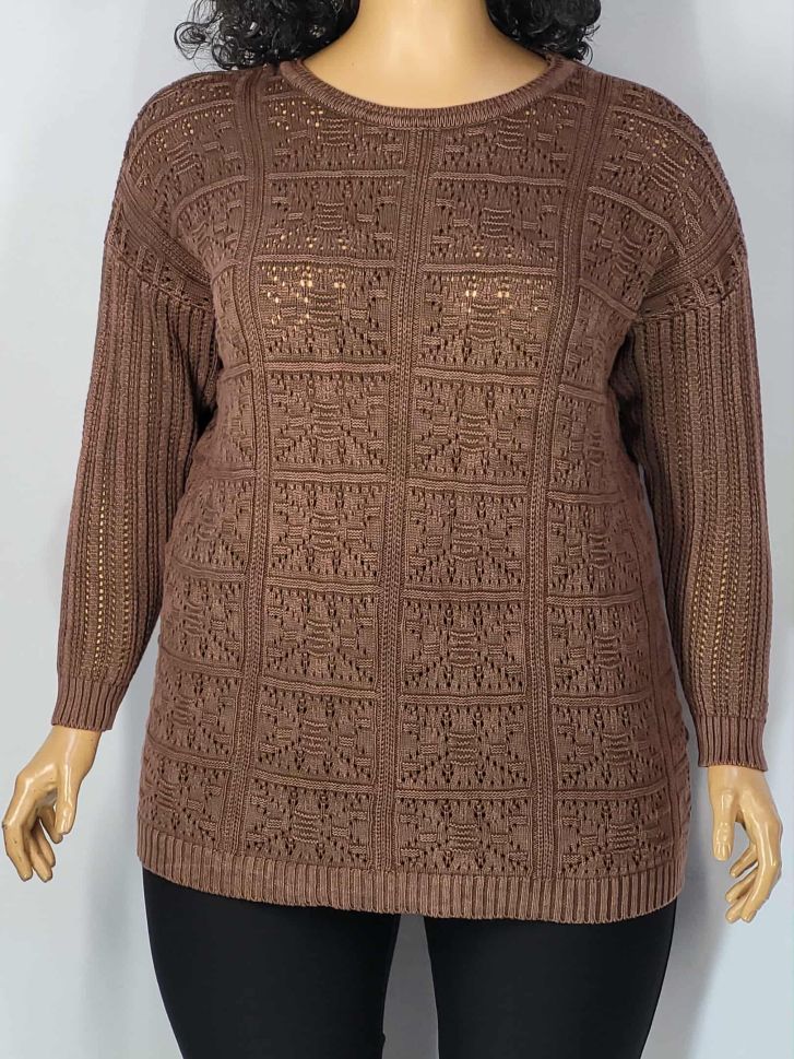 Дамски макси пуловер в големи размери интересна плетка варен памук различни цветове 01 01524