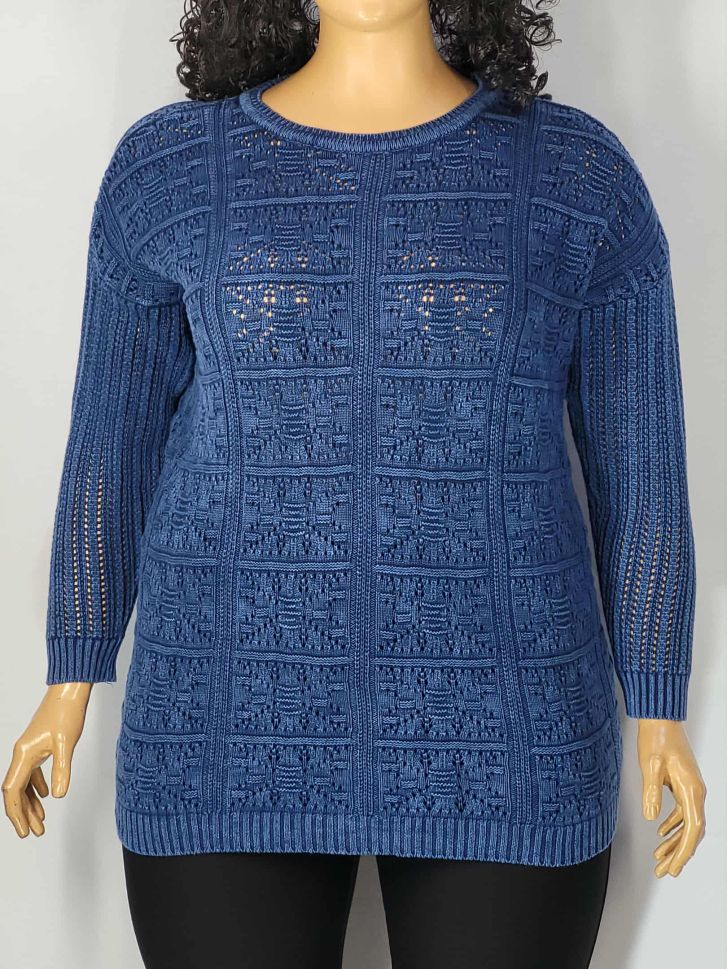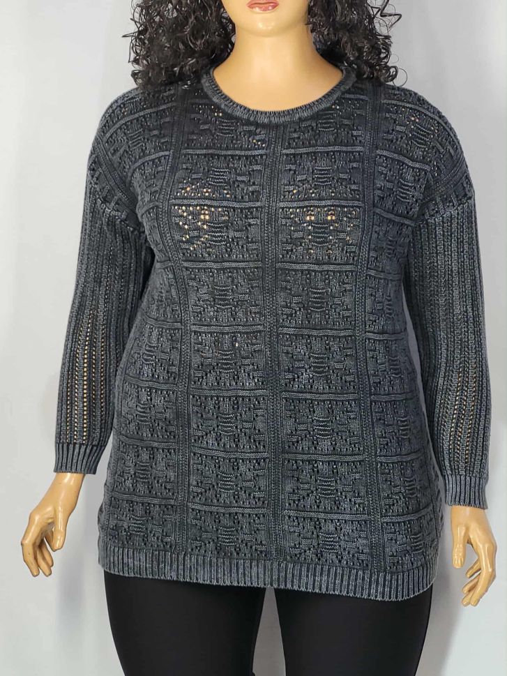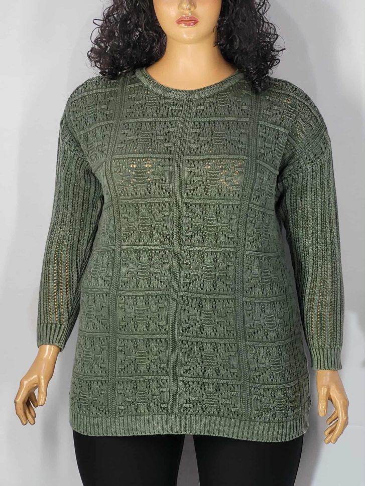 Начало Дамско Блузи дълъг ръкав Дамски макси пуловер в големи размери интересна плетка варен памук различни цветове 01 01524