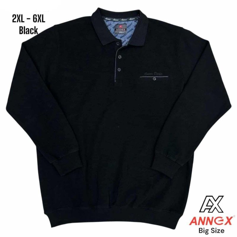 Мъжка блуза плътна рипс с яка и копчета в големи размери в черно 20 00526