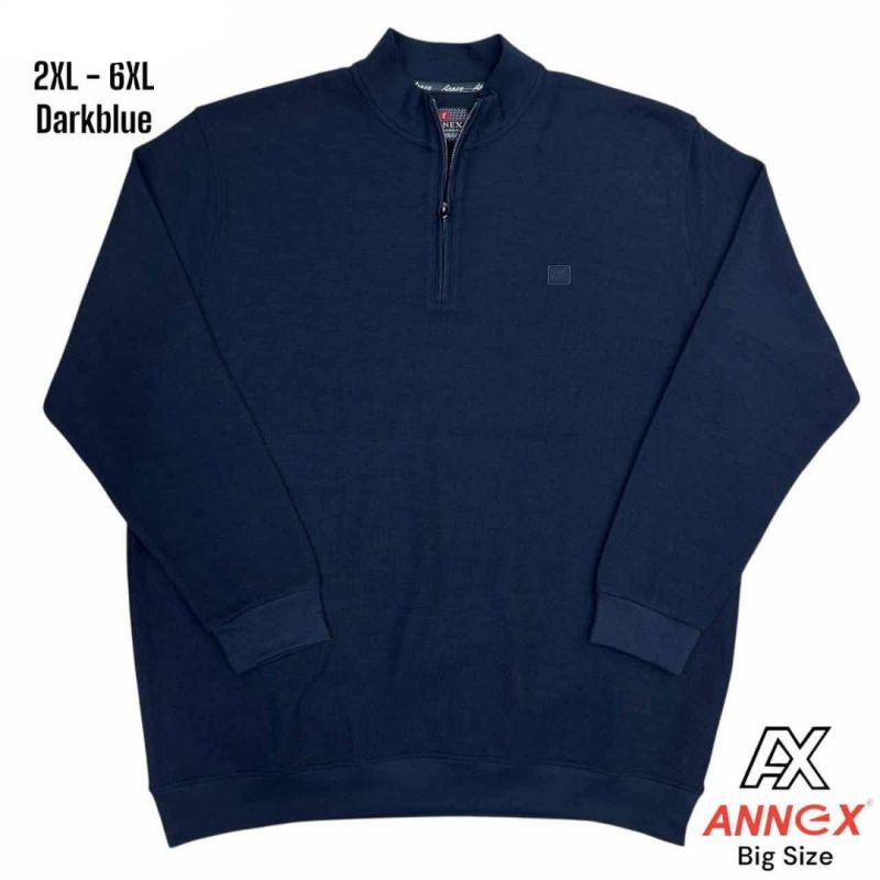 Мъжка блуза с цип и интересна плетка в големи размери тъмно синьо 20 00528