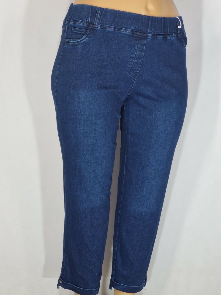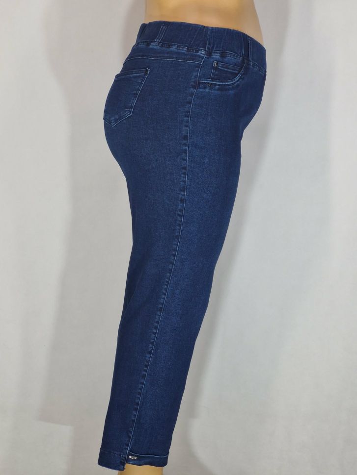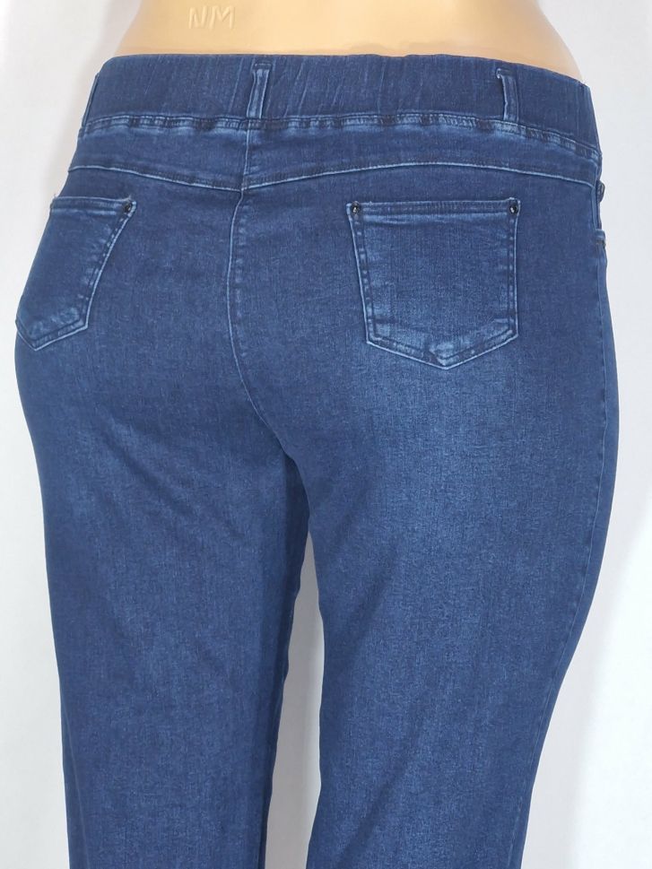 Дамски макси спортни плътни еластични дънки в големи размери изчистени с маншет в синьо 02 00558