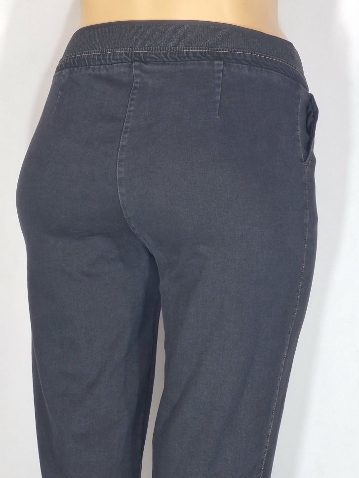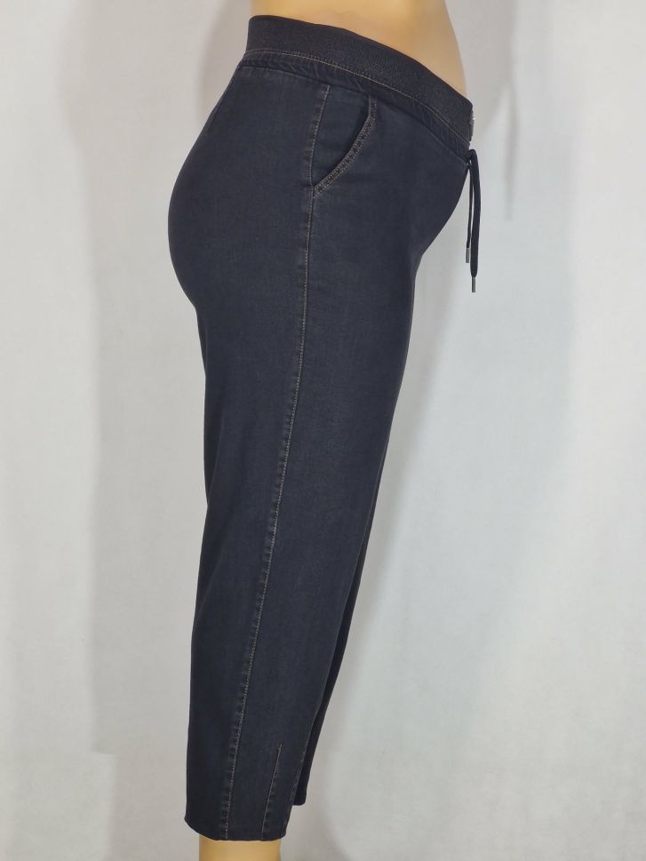 Дамски макси спортни плътни еластични дънки в големи размери с широк ластик и връзка в черно 02 00562