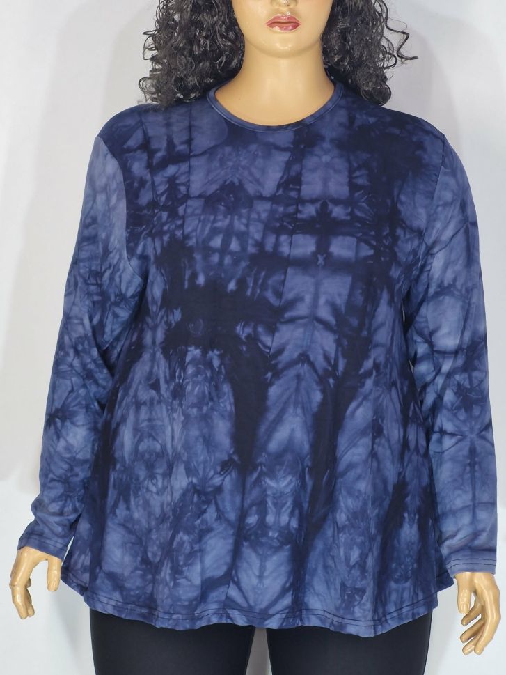 Дамска макси блуза в големи размери трико с преливаща разцветка от индиго към по светло синьо 01 01538