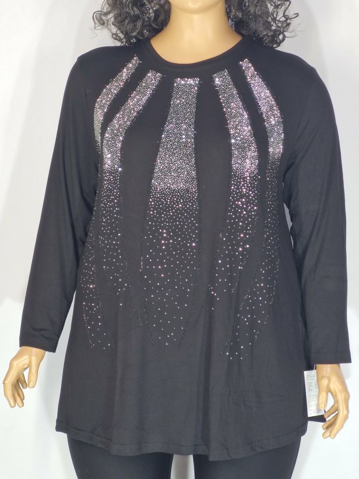Дамска макси блуза в големи размери от трико в черно с щампа камъчета 01 01539