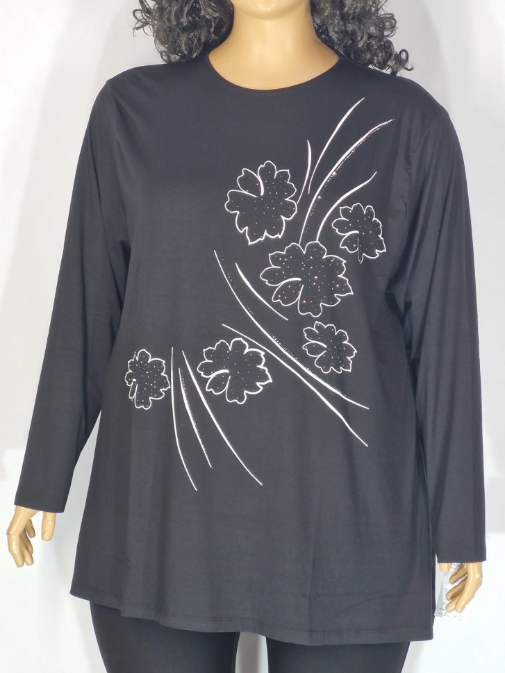 Дамски макси блузон в големи размери от финно трико с интересна щампа 01 01544