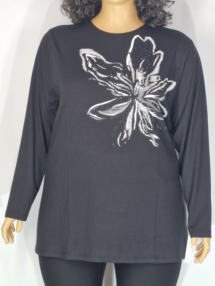 Дамски макси блузон в големи размери от финно трико с интересна щампа 01 01546