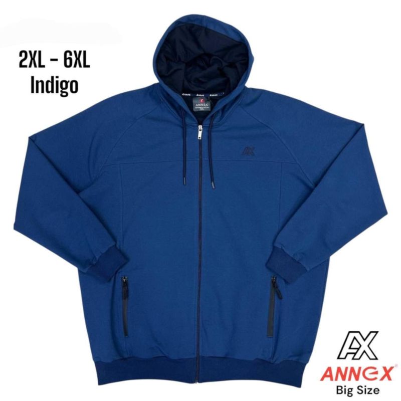 Мъжки суитчер с цип в цвят индиго, наличен в големи размери от 2XL до 6XL. Удобен модел с качулка, странични джобове с цип и комфортна кройка за едро телосложение. Подходящ за ежедневно носене, спорт и свободно време. Идеален избор за мъже, търсещи стилен и практичен суитчер в големи размери.