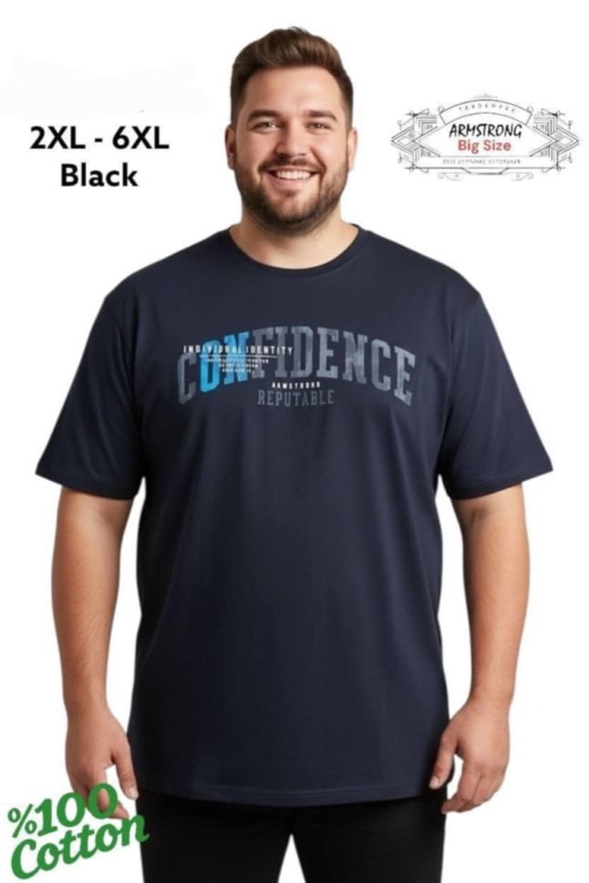 Мъжка тениска в големи размери от 2XL до 6XL, изработена от 100% памук. Удобен модел с класическа кройка, кръгло деколте и стилна щампа. Подходяща за ежедневно носене, спорт и свободно време. Идеален избор за мъже с едро телосложение, търсещи качествена памучна тениска в голям размер.