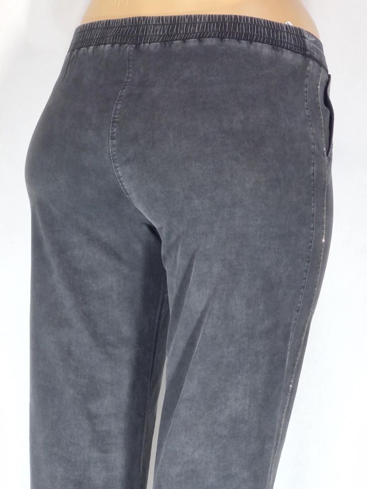 Дамски макси спортни еластични дънки в големи размери тънки с връзки и кант камъни в сиво 02 00567