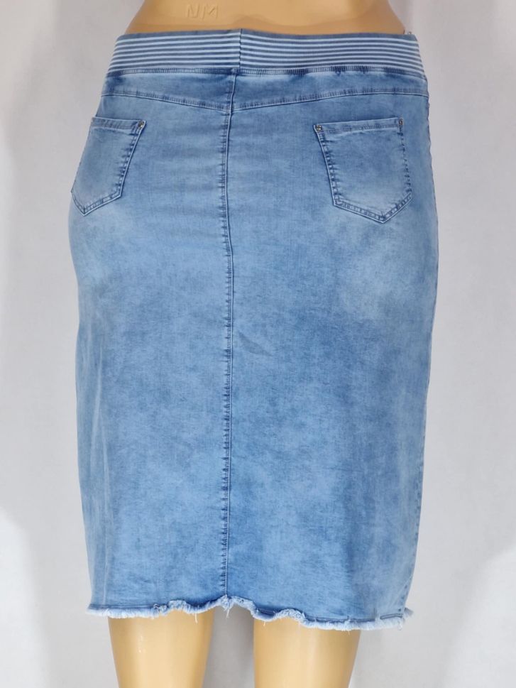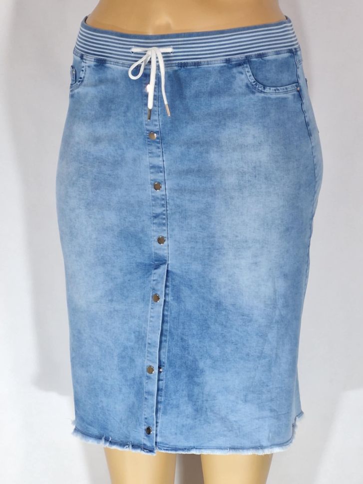 Дамска макси еластична дънкова права пола в големи размери с връзки на ластик с ефект копчета отпред в синьо 04 00112