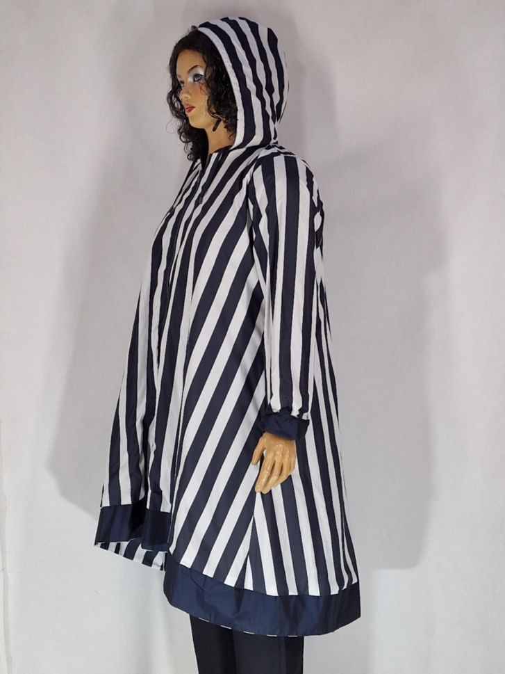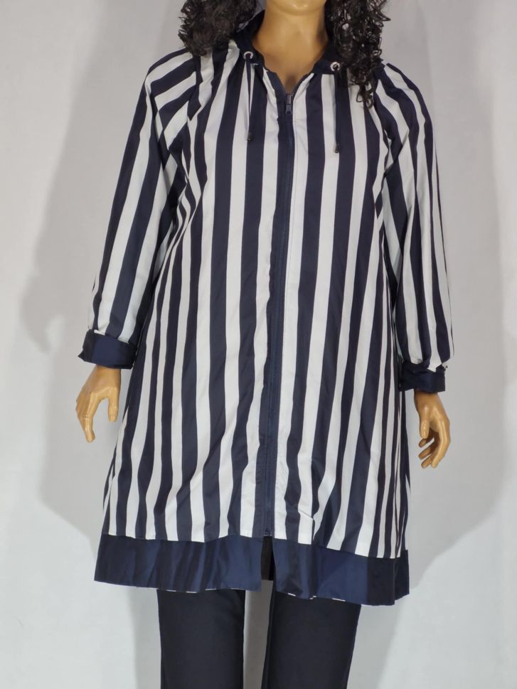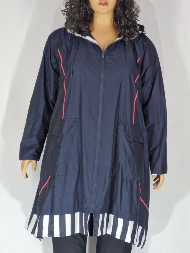 Дамско макси дълго яке в големи размери тип ветровка двулицево в синьо и в рае 06 00281