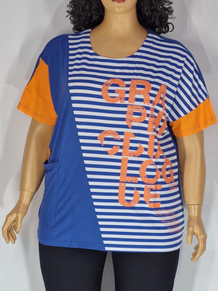 Дамска макси блуза в големи размери с интересна комбинация от рае в синьо 10 00108