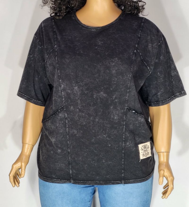 Дамска макси блуза варен памук с къс ръкав в големи размери изчистена в сиво 10 00133