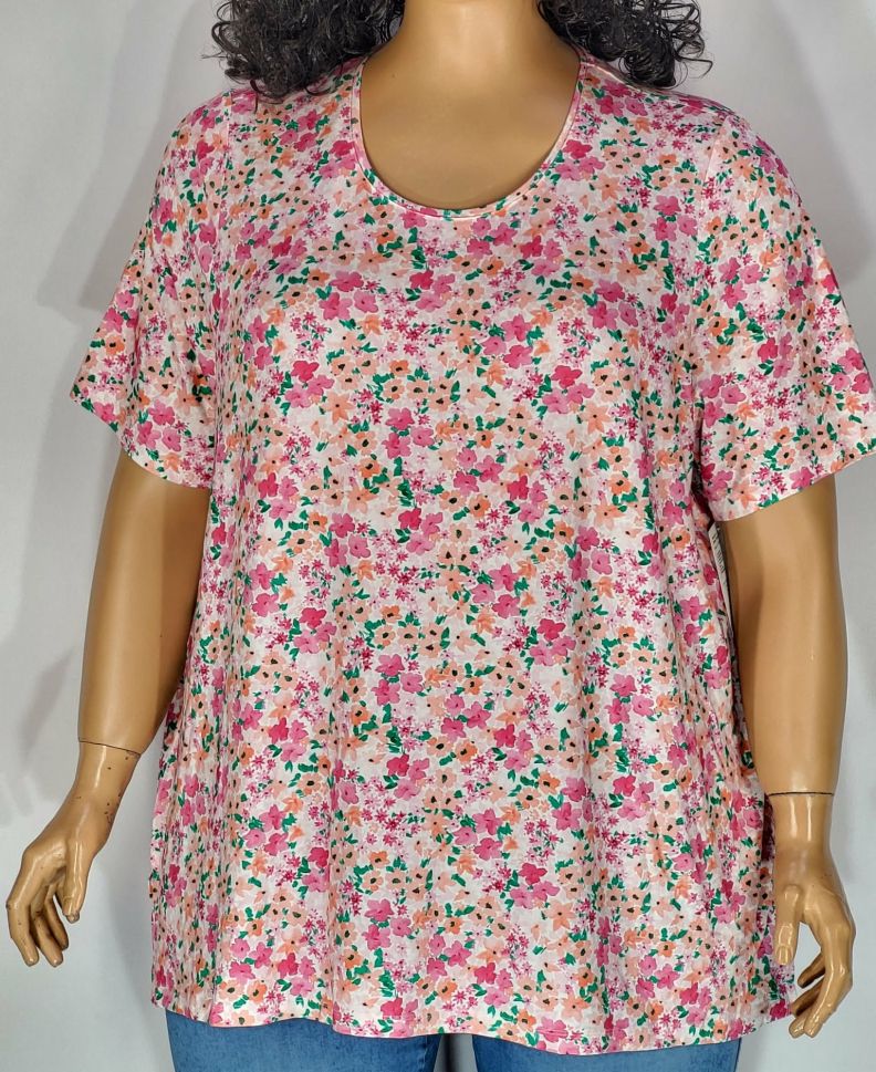 Дамска макси блуза с къс ръкав в големи размери с интересна щампа цветя 10 00143