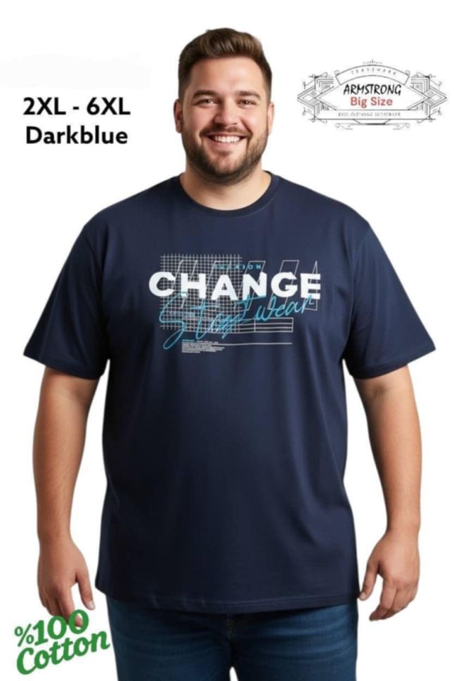 Мъжка тениска в големи размери от 2XL до 6XL, изработена от 100% памук. Удобен модел с класическа кройка, кръгло деколте и стилна щампа. Подходяща за ежедневно носене, спорт и свободно време. Идеален избор за мъже с едро телосложение, търсещи качествена памучна тениска в голям размер.