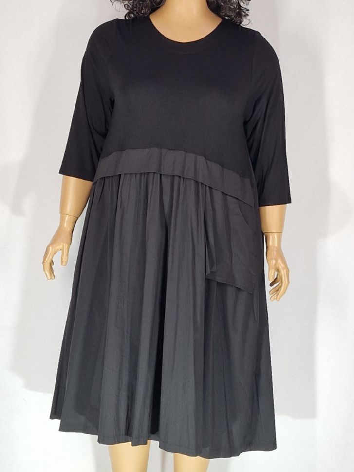 Начало Дамско Рокли Дамска макси рокля в големи размери с интересна кройка и съчетание трико и тънък плат в черно 05 00371